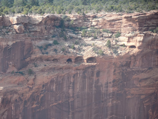 From Spider Rock we retraced our steps back to the entrance of the Canyon and went up Route 64. The pavement ends for Route 7 at Spider Rock and continues on as a dirt road. I'm all for dirt roads but this one didn't take us where we wanted to go and it was pretty sloppy from the recent rains. The first overlook off 64 is a quarter mile trail to the canyon rim with several overlooks. One of them is.