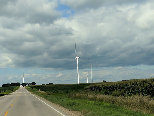 Four things that summarized Illinois: 1. Corn fields 2. Grain silos 3.Wind generators 4:Rough roads